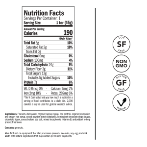 Tags: claim_gluten_free, claim_non_gmo, claim_soy_free, claim_vegan, Cocoa Powder Dutch Alkalized, Mixed Tocopherols, Organic Brown Rice and Brown Rice Syrup, Organic Date Paste, Organic Tapioca Syrup, Peanuts, Picky Products, Rice Protein, Sea Salt, Semisweet Chocolate Chips, single